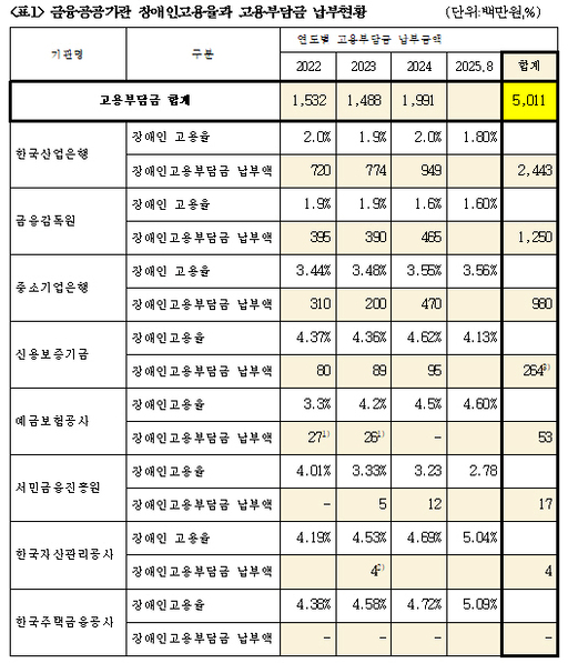 8개 금융공공기관 가운데 4곳도 장애인 고용 미준수…3곳은 '고용 후퇴'
