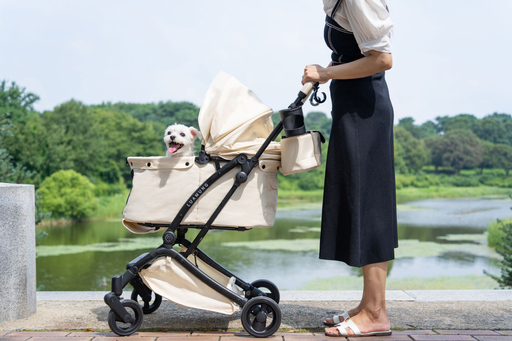 루나A는 원터치 폴딩으로 1초 만에 쉽게 접을 수 있으며, 6.2kg의 초경량 무게와 35cm x 60cm의 넓은 탑승 공간(소형견 2마리 탑승 가능)을 갖췄다.
