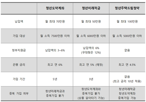 청년정책금융상품은 청년의 자산형성 지원을 위해 정부와 은행권이 연계해 판매하는 상품이다. 은행권 상품과 비교해 기본 금리수준이 높고, 각종 혜택과 함께 정부 지원금도 제공되는 만큼 우선순위가 높다. 다만 청년정책금융상품은 중위소득 이하 청년의 자산형성을 지원한다는 취지에 따라 상품별로 소득요건이 존재하며, 중복가입이 불가한 경우도 있다. 정책금융상품은 각 은행에서 비대면·대면 가입이 가능하며, 상품에 따라 알맞은 서류를 구비해야 한다.