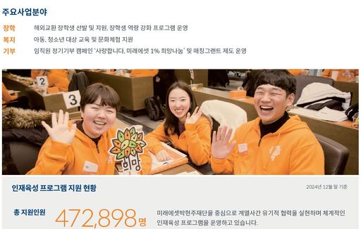 이를 위해 미래에셋증권은 청소년 대상 금융진로캠프와 글로벌 문화체험단을 통해 미래세대가 금융을 체험하고 진로를 탐색할 수 있도록 꾸준히 지원해왔다. 디지털자산 교육 시리즈 <당신의 미래를 위한 STORY>는 블록체인과 토큰증권 같은 새로운 금융 패러다임을 쉽게 전달하며 청년층의 호응을 얻었다. 특히 '펀드매니저 체험', '금융권 직업 탐색' 같은 실습형 과정은 단순 교육을 넘어 실제 금융산업 이해로 이어졌다.