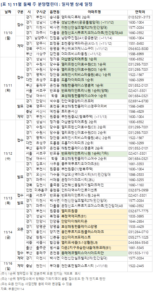 9일 부동산R114에 따르면 11월 둘째 주에는 전국 12개 단지 총 8583가구가 분양을 시작한다. 이 가운데 일반분양 물량은 4398가구다.