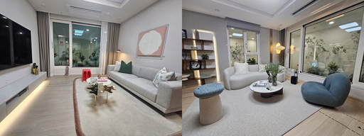 견본주택은 59㎡B와 84㎡B타입의 내부를 볼 수 있는 유닛이 마련됐다. 모두 층고가 2.5m며, 우물천장 쪽은 2.6m로 더 높아진다. 이와 함께 시스템 에어컨과 인덕션 정도를 제외하고는 대부분 옵션이 아닌 기본 사양에 포함되어 있었다.