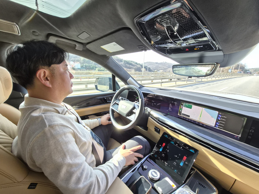 자유로를 시속 90㎞로 주행하는 차에서 손과 발을 떼자 스스로 차선을 따라 이동했다. 또 앞차가 저속으로 주행중이면 스스로 차선을 바꿔 차량을 추월해 나갔다.