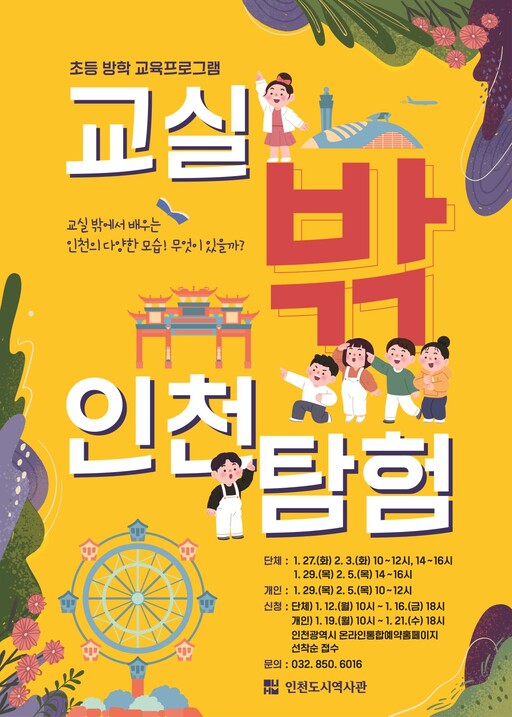신청은 단체 교육은 1월 12~16일, 개인 교육은 1월 19~21일 인천시 통합예약 누리집에서 가능하며, 자세한 사항은 인천도시역사관으로 문의하면 된다.