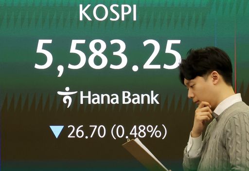 12일 코스피는 전 거래일보다 26.70포인트(0.48%) 하락한 5583.25에 장을 마쳤다. 기관은 539억원, 개인은 2조2328억원을 순매수했다. 반면, 외국인은 2조3633억원을 순매도하며 지수 하락을 주도했다.