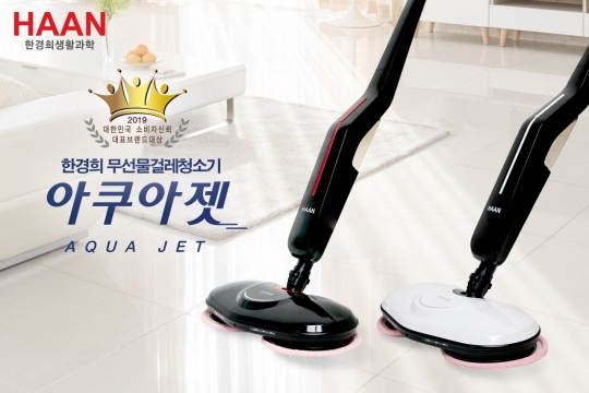 한경희생활과학은 무선물걸레청소기 '아쿠아젯'(사진)이 한국브랜드경영협회에서 주관하는 2019 대한민국 소비자신뢰 대표 브랜드 대상을 수상했다고 29일 밝혔다. 2년 연속 수상 쾌거다.