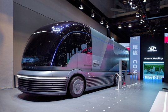 현대차는 8월 독일 프랑크푸르트 모터쇼에서 첫선을 보인 전기차(EV) 비전 콘셉트 '45'도 아시아에서 처음 공개했다. 수소전기차 '넥쏘'와 수소차의 구조를 한눈에 볼 수 있는 '넥쏘 절개차', '연료전지 시스템 목업'과 함께 수소 전용 대형 트럭 콘셉트 '넵튠' 역시 아시아에서 최초로 선보였다.