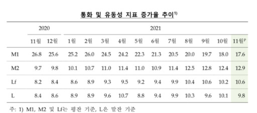 시중 통화량은 신종 코로나바이러스 감염증(코로나19) 사태로 지난해 4월 말 처음으로 3000조원을 돌파했다. 이후 가파른 증가세가 이어지면서 매월 사상 최대치를 경신하고 있다. 지난해 9월에는 처음 3500조원을 돌파하기도 했다.