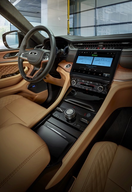 특히 그랜드체로키L의 실내는 넓고 고급스러웠다. 긴 전장과 축거 덕분에 3열까지 여유로운 공간을 제공한다. 인테리어는 현대적인 표현력과 장인의 수작업 공정을 통해 완성도 높은 디테일을 제공한다. 프리미엄 팔레르모 가죽 시트에서 나무 프레임으로 이어지는 마감소재는 고급스럽다. 1열 시트에는 파워 마사지 기능을 제공해 장시간 운전으로 뭉친 허리와 등 근육을 풀어줬다. 2열에는 회전 시 한쪽으로 쏠리는 현상을 방지하는 '버킷 시트'를 적용해 탑승객에게 안락한 승차감을 제공한다. 또 2열과 3열에 스마트폰과 태블릿PC 등을 충전할 수 있는 USB포트와 무선 충전패드를 적용해 편의성을 높였다. 운전석엔 10.25인치의 컬러 클러스터 디스플레이어와 스티어링 휠 중앙에 위차한 사격형의 지프 엠블럼이 묘하게 조화를 이룬다.