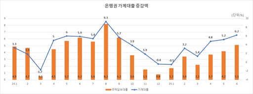 한국은행이 9일 발표한 금융시장 동향에 따르면 6월 기준 은행권 가계대출 잔액은 1161조5000억원으로 한달 새 6조2000억원 늘어난 것으로 집계됐다.