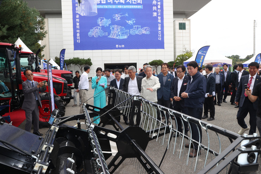 19일 농협에 따르면 지난 17일 세종 농어민문화체육센터 일대에서 '벼 수확 시연회'가 개최됐다. 행사에서는 ▲벼 수확 ▲경운 ▲방제 등의 농작업이 시연됐고 스마트농기계와 농자재(비료, 농약, 시설자재) 등이 전시됐다.