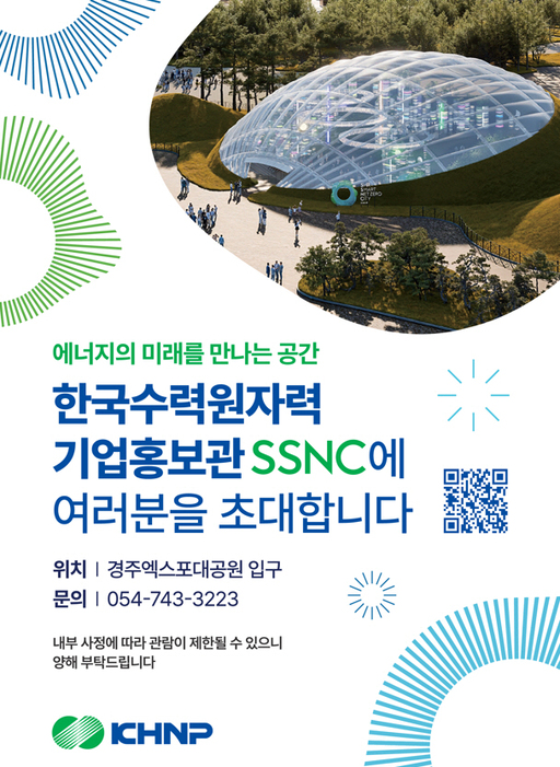 한국수력원자력(한수원)이 차세대 원전 기술과 신재생에너지 기반의 탄소중립 비전을 담은 미래 에너지 전시관을 선보인다. 한수원은 경주엑스포대공원 내에 기업홍보관 'SSNC(SMR Smart Net zero City)'를 18일 공식 개관한다고 밝혔다.
