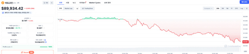 18일 오후 비트코인, 1BTC당 8만9900달러…7달 만에 9만달러 붕괴