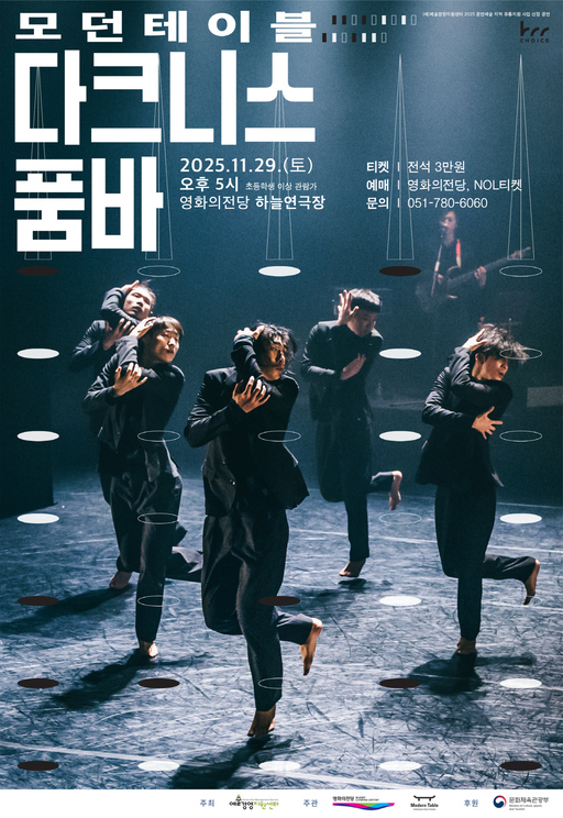 영화의전당은 오는 29일 오후 5시 하늘연극장에서 모던테이블의 '다크니스 품바' 공연을 개최한다고 밝혔다. 이번 공연은 문화체육관광부와 예술경영지원센터의 2025 공연 예술 지역 유통 지원 사업 선정작이다.