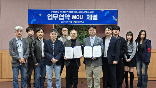 동명대학교 엔터테인먼트예술학과와 거제시문화예술재단이 실용 인재 양성과 문화 예술 발전을 위한 협약을 지난 17일 체결했다고 밝혔다.