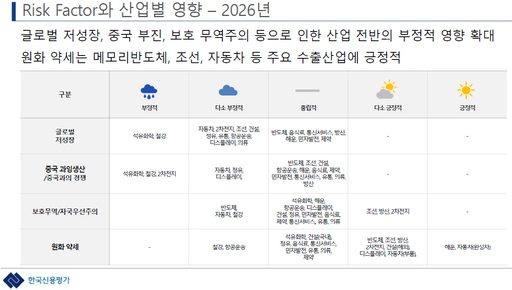 국내 신용시장의 균열이 내년 더 뚜렷해질 전망이다. 앞서 기업 전반에서 '등급 하향'이 상향보다 많아졌다는 분석이 나온 데 이어, 무디스와 한국신용평가가 공개한 2026년 신용전망에서도 산업별 양극화가 선명해졌다. 글로벌 저성장, 중국 과잉공급, 미 관세정책, 원화 약세, 국내 부동산 리스크 등 복합 요인이 겹치면서 한국 기업의 신용도는 전반적으로 방어 국면에 접어들었지만, 일부 업종만은 외부 환경 변화가 오히려 수익성·현금흐름을 개선시키는 방향으로 작용하고 있기 때문이다. 무디스와 한신평은 "내년 한국 기업의 성적표는 경기보다 산업 구조에서 갈릴 것"이라고 진단했다.