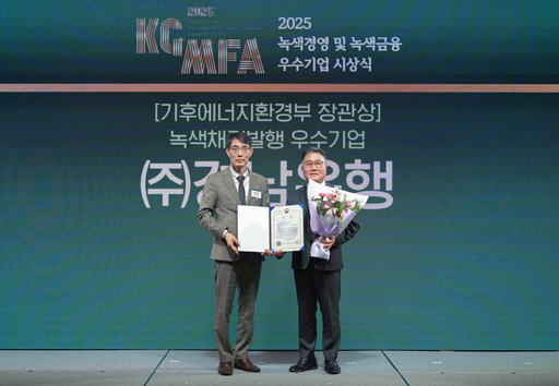 BNK경남은행은 기후에너지환경부와 한국환경산업기술원이 주관하는'2025년 녹색경영 및 녹색금융 우수기업 시상식'에서 '기후에너지환경부 장관상'을 받았다고 27일 밝혔다.