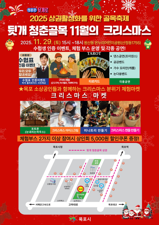 목포시는 오는 11월 29일(토) 온누리어린이공원에서 '뒷개 청춘골목 11월의 크리스마스'를 개최한다.