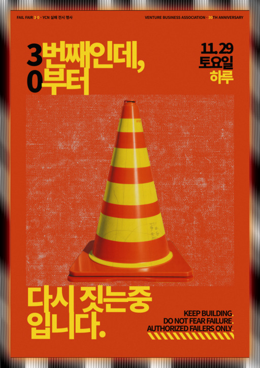 행사 슬로건은 '3번째인데, 0부터 다시 짓는 중입니다'로, 창업가의 실패를 '공사 중인 과정'으로 바라보는 데 초점을 뒀다. 행사장은 공사 현장 콘셉트로 구성하고 ▲입구 포토존 ▲실패 기록벽 ▲휴게 구역 등을 통해 '모두가 여전히 건설 중인 창업가'라는 메시지를 공간 전반에 녹였다.