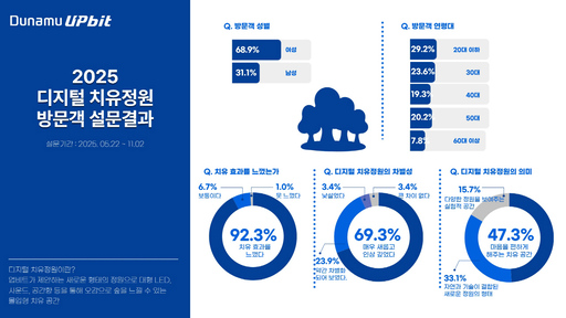 한편 두나무는 산림청, 서울시 등과 협력해 디지털 치유정원 설계 및 기술 기반 정원 문화 고도화를 위한 공모전을 진행 중이다. 총상금 2000만원 규모로 산림청장상, 서울시장상, 두나무 대표이사상 등이 수여되며, 오는 12월 3일 최종 심사가 예정돼 있다. 선정 작품은 향후 실제 디지털 치유정원 운영에 적용될 계획이다.