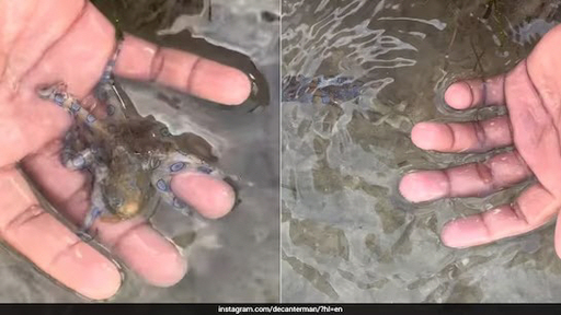 16일(현지시간) NDTV에 따르면 필리핀에서 영국인 관광객 앤디 맥코넬은 얕은 바닷물에서 파란색 고리 무늬를 가진 작은 문어 한 마리를 발견했다.