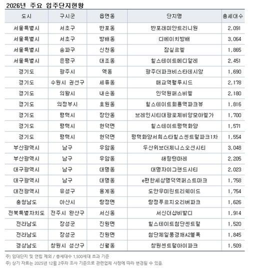 -2026년 전국 아파트 입주물량…전년 대비 28% ↓
