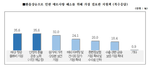 해상·항공 물류비 지원, 시장 개입등 안정적 환율 운용등 요구