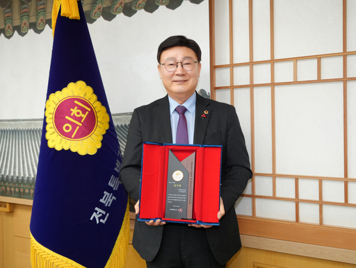 전북특별자치도의회 문승우 의장이 24일 전북 체육 발전에 기여한 공로를 인정받아 대한체육회로부터 감사패를 받았다.