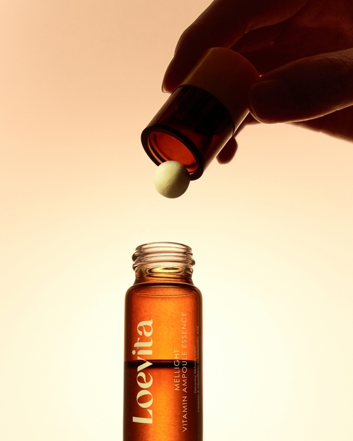 로에비타 '멜라이트 비타민 앰플 에센스'는 부스팅 에센스에 비타민C 앰플 볼을 직접 녹여 사용하는 브랜드 대표 제품이다. 비타민 효능을 피부에 효과적으로 전달하기 위해 비타민 미세 입자를 구현, 이상적인 온도 및 기술로 동결건조해 유효성분 함량과 안정성을 높였다.