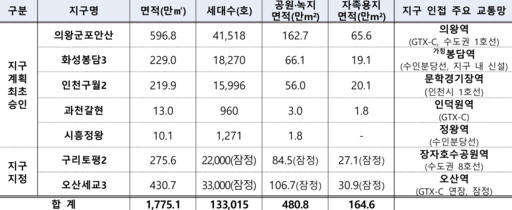 해당 지구들은 GTX-C·수인분당선 등 주요 노선이 지나는 철도역이 인접해 수도권 주요 지역으로 접근이 편리하다. 대규모 공원녹지 등을 조성해 신도시의 자족성을 강화할 예정이다.