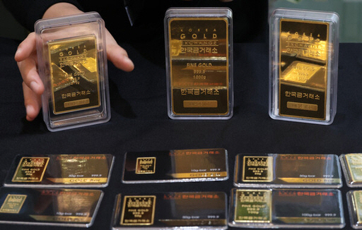 서울 종로구 한국금거래소에 전시중인 골드 바. /뉴시스