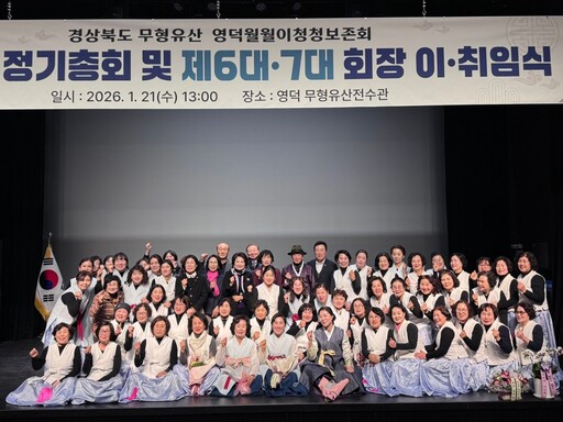 영덕월월이청청보존회는 영덕 무형문화재 전수교육관에서 2026년 첫 정기총회를 열고, 회장 이·취임식을 진행했다. 이날 행사에서는 제6대 김영란 회장이 이임하고, 제7대 회장으로 최후남 씨가 새롭게 취임했다.
