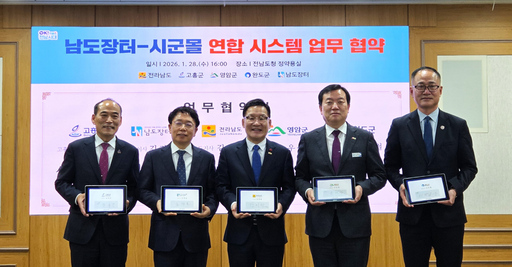 완도군은 지난 28일 전남도청 정약용실에서 남도장터, 고흥군, 영암군과 함께 '남도 장터-시군 몰 연합 시스템 업무 협약'을 체결했다.