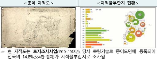 정부가 387억 원을 투입해 실제 토지 이용 현황과 맞지 않는 지적도의 오류를 바로잡는다.