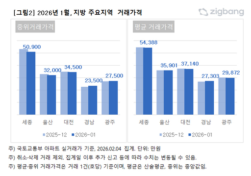 관계자는 "지방 일부 지역의 거래량 반등은 주목할 만한 변화지만 가격 상승으로 이어질 지에 대해서는 추가적인 확인이 필요하다"며 "지방 시장의 경우 그간 공급 부담과 지역 경제 여건 등의 영향으로 거래가 위축돼 왔던 만큼 기저효과이거나 연말로 이연됐던 계약이 1월에 반영된 결과일 가능성도 있다"고 분석했다. 수도권에서는 거래량이 감소세를 나타냈다.