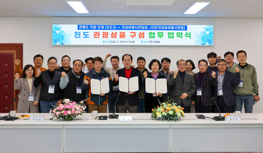 진도군은 지난 25일에 진도군청에서 국내여행사연합회, 한국대표여행사연합과 함께 '관매도 직항 연계 진도 관광상품 구성'을 위한 업무협약(MOU)을 체결했다.