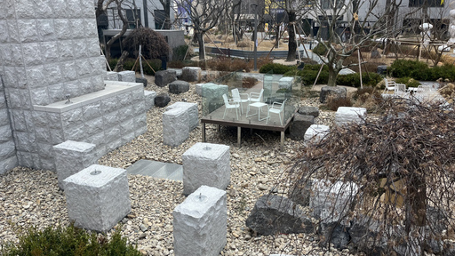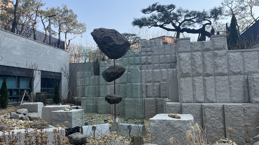 한편에는 이태수 작가의 작품 '스톤 컴페티션(Stone competition)-044'이 설치돼 있다. 크기가 다른 돌들이 공중에 떠 있는 듯한 형태로,자연 소재를 비현실적으로 재구성한 것이 특징이다.