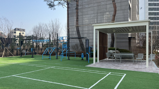 운동 공간 주변에는 잔디 마당이 함께 조성돼 있다. 가벼운 운동이나 스포츠 활동에 이용할 수 있는 개방형 공간이다.