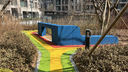단지 내 보행로 일부는 강한 색채 디자인을 적용했다. 초록색·노란색·빨강색 등 단색으로 구분된 바닥길이 인근 놀이터와 자연스럽게 이어져 아이들의 역동적인 움직임을 이끈다.