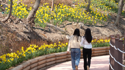진도군 의신면 사천리에 있는 산림욕장에는 2022년부터 조성한 생태탐방로 부지에 수선화와 애기동백이 만개하며 봄을 알리고 있다.