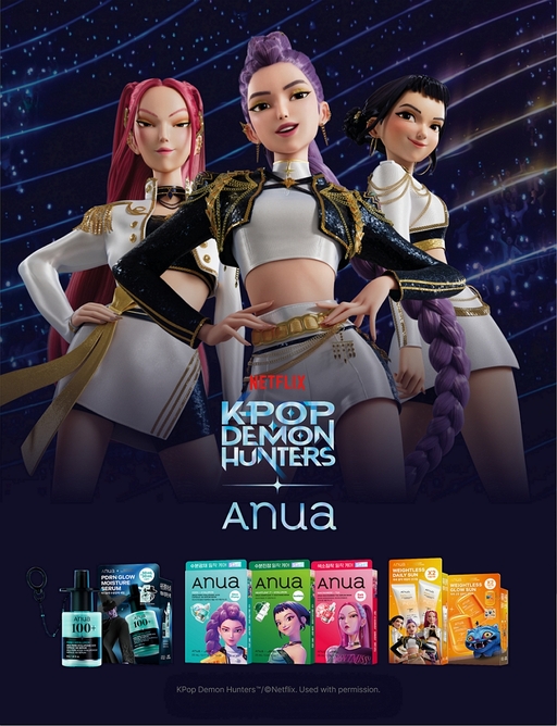 신생 스킨케어 브랜드 아누아는 인기 애니메이션 '케이팝 데몬 헌터스(케데헌)'와 협력한다. 이달부터 케데헌 캐릭터를 활용한 한정판 제품을 순차적으로 출시하고 두 브랜드의 세계관을 주제로 한 K뷰티 콘텐츠를 선보인다.