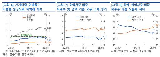 김정호 안정총괄팀장은 이날 설명회에서 취약차주 비중이 최근 다시 늘어난 것과 관련해, "신용회복 지원 조치의 효과가 일회성에 그쳤다고 보긴 어렵다"며 "앞으로 금리나 시장금리 여건 변화에 따라 연체율이 다시 높아질 가능성은 있다"고 덧붙였다.