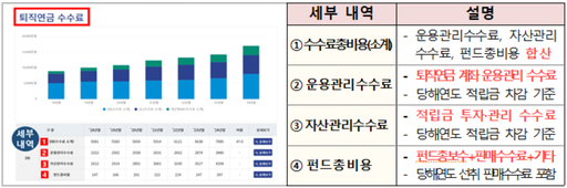 가장 눈에 띄는 변화는 '수수료금액' 항목의 신설이다. 기존에는 퇴직연금 시장의 전체 규모 위주로 정보가 제공되었으나, 이번 개선을 통해 사업자별로 실제 징수하는 수수료 상세 내역이 공개된다.