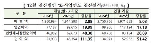 2일 한국거래소가 발표한 '코스닥시장 12월 결산법인 2025사업연도 결산실적'에 따르면 코스닥 상장사 1268곳(금융업 등 제외)의 지난해 연결 기준 매출액은 297조1658억원으로 전년 대비 8.03% 증가했다. 영업이익은 11조7124억원으로 17.18%, 순이익은 5조2952억원으로 51.42% 늘어나며 수익성이 크게 개선됐다. 영업이익률과 순이익률도 각각 3.94%, 1.78%로 소폭 상승했다.