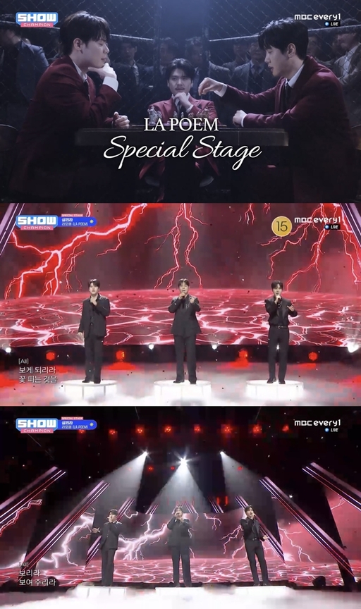 크로스오버 그룹 라포엠(LA POEM)이 지난 8일 방송된 MBC M, MBC에브리원 '쇼! 챔피언'에 출연해 지난 1월 발매한 세 번째 미니 앨범 '얼라이브(ALIVE)'의 수록곡 '살리라' 무대를 꾸몄다. '살리라'는 싱어송라이터 안예은이 작사, 작곡한 곡으로 발매와 동시에 음원 차트 상위권에 오른곳이다. 이후에도 꾸준한 사랑받은 곡으로 음악방송에서 처음으로 공개하게 됐다.
