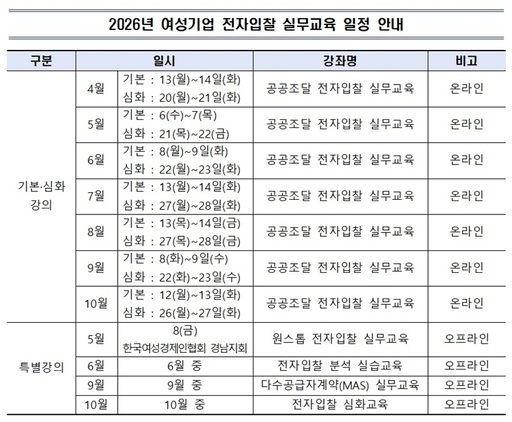 한국여성경제인협회가 '2026 여성기업 전자입찰 실무교육'을 실시한다.