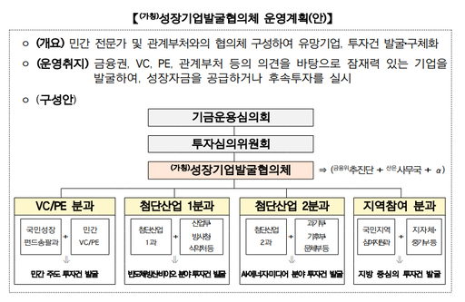 또한 '성장기업발굴협의체'를 통해 VC·PE 등 민간 운용사의 네트워크를 활용, 유망 기업 발굴부터 후속 투자까지 이어지는 체계를 마련한다. 이를 통해 기술력은 있으나 자금 접근성이 낮은 기업까지 지원 범위를 넓힌다는 방침이다.