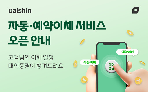 대신증권은 고객이 지정한 날짜에 일정 금액을 자동으로 보내거나 받을 수 있는 '계좌 자동·예약이체 서비스'를 모바일트레이딩시스템(MTS) 뱅킹 모드에 도입했다고 17일 밝혔다.