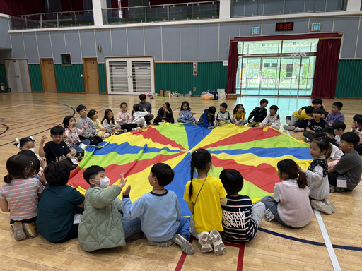 본격적인 활동에서는 5개의 부스를 순환하는 스테이션식 협동 놀이가 펼쳐졌다. 스피드 공 전달, 개구리 뛰기, 끈끈이 던지기, 판제기 차기 등의 다채로운 활동이 이어졌다. 교실에서 책으로만 접하던 놀이들이 강당이라는 넓은 공간에서 타 학교 친구들과 어우러지는 생생한 경험으로 재탄생하며 학생들의 큰 호응을 얻었다.