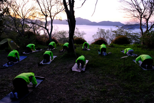 100배를 마친 후 참가자들은 30여분 동안 산길을 걷는다. 죽도의 상징인 대나무밭도 곳곳에서 만날 수 있다. 죽도는 임진왜란 당시 화살대를 만들기에 안성맞춤인 대나무가 많아 붙여진 이름이다. 한산도가 바라보이는 죽도 동쪽의 명상바위 위에선 새벽 바람과 떠오르는 태양을 온몸으로 맞으며 명상에 잠긴다.
